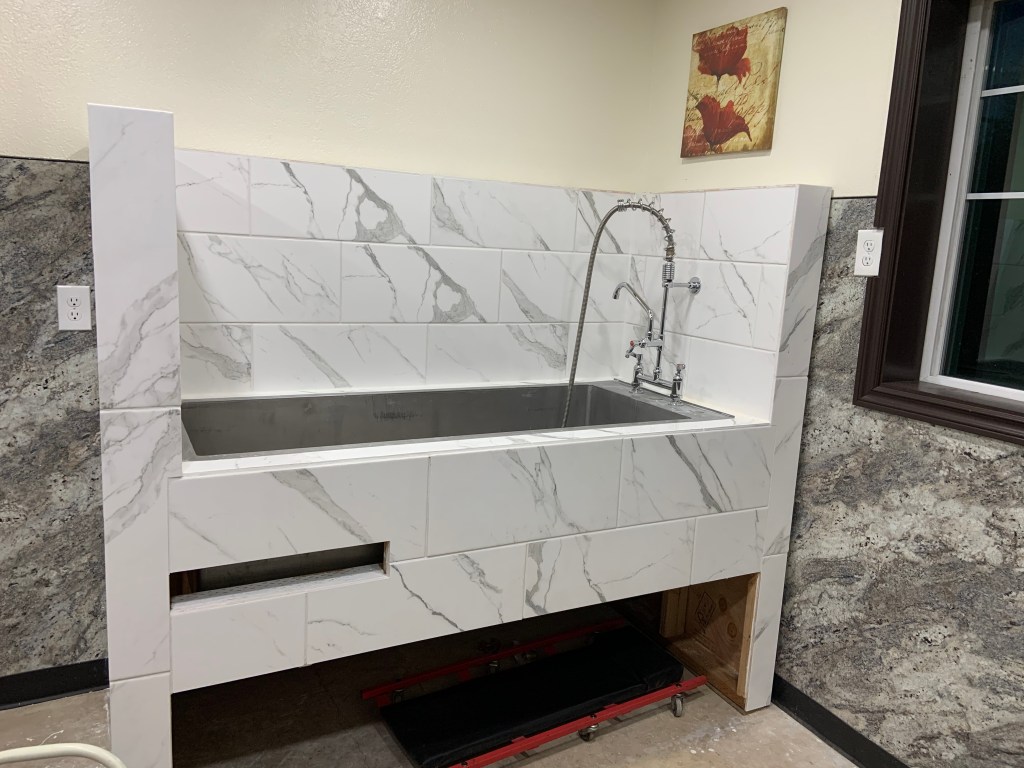 Great News, the Milk Room is completed!! We tiled the Sink surround (neither of us had ever tiled before) and it turned out Gorgeous! Looks like a Spa! But easy to keep sanitized as well as the Formica on the walls and the Stainless Steel Sink. The unveiling will be now!!!