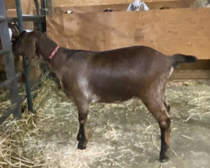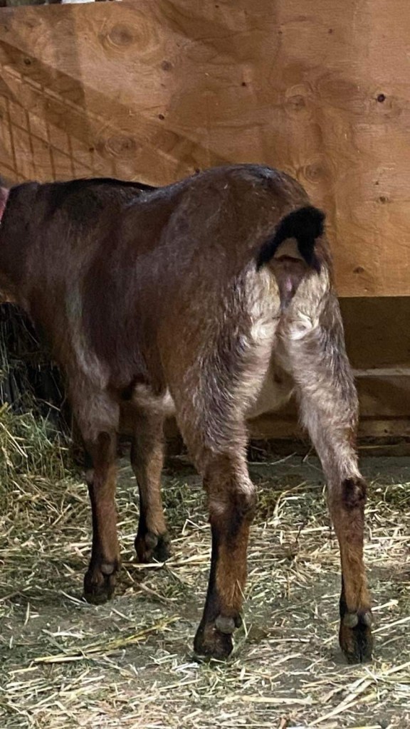 Tansy has phenomenal Nubian Breed Characteristics, beautiful fore Udder, lovely long easy to milk teats, long bodied, wide, well sprung rib cage, great depth of body and a beautiful topline. While there is no such thing as a perfect Goat, Tansy could use improvement on better rear Udder attachments.