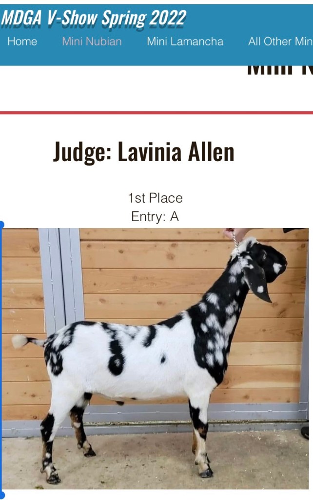 UPDATE: I just saw that Blue Cashmere also won MINI NUBIAN SENIOR BUCK RESERVE CHAMPION under Judge Katelyn Greene!