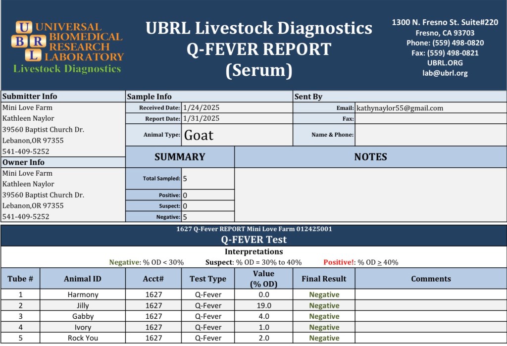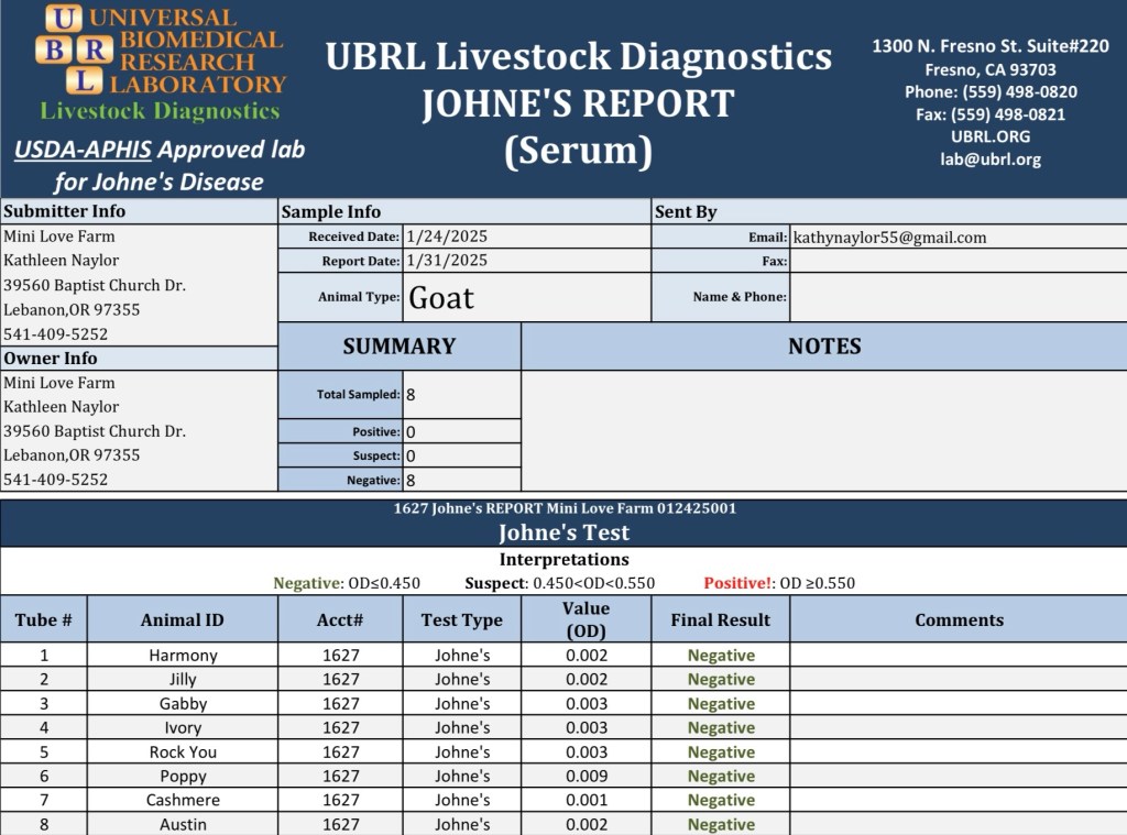 I didn’t test in 2024 as I didn’t take the Goats off the property. I did bring in five new goats from well respected farms that do test, so I didn’t feel the need to test them.