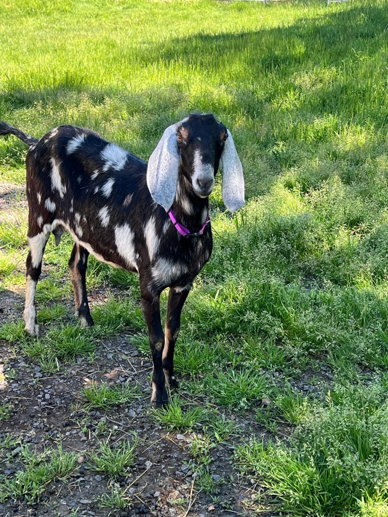 Harmony is a beautiful Doe, she has an impressive Pedigree full of milk stars and show Champions . Harmony is long bodied with a long level topline, great rear leg angulation and Beautiful breed characteristics.