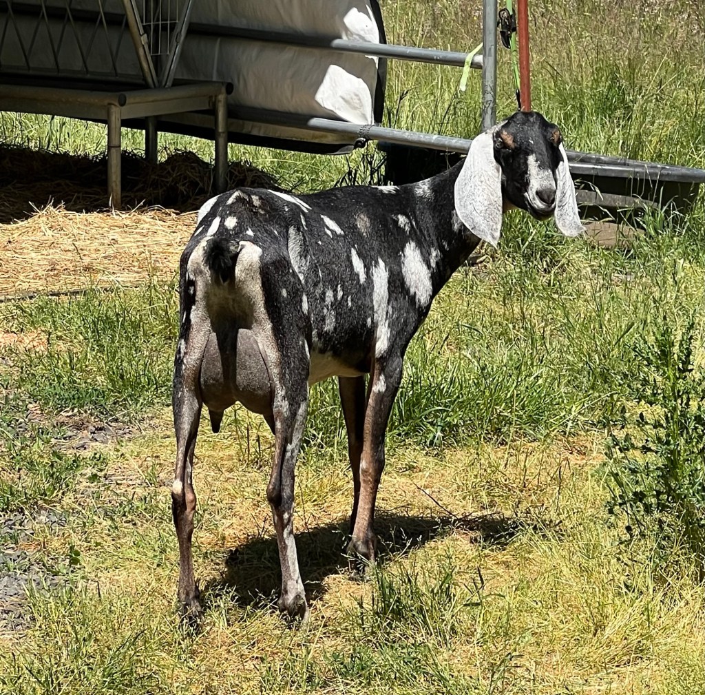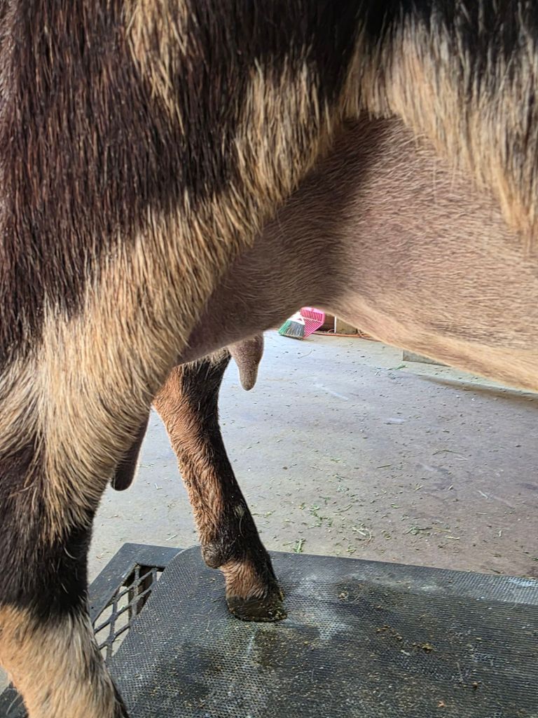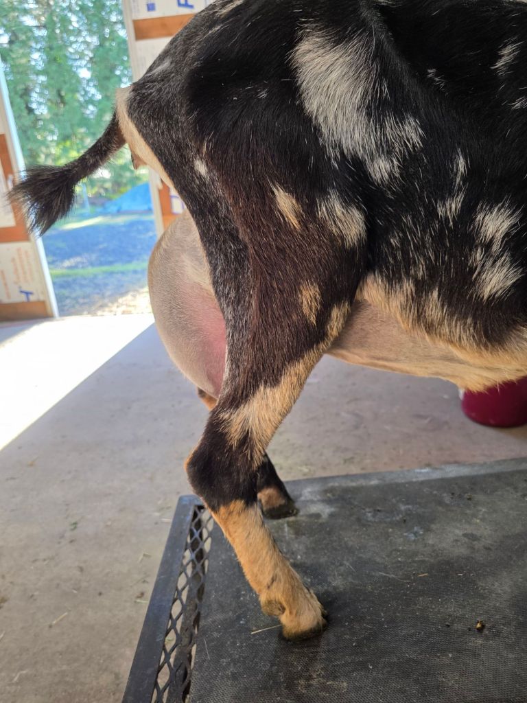 Harmony is a sweet tempered Doe, she is an excellent mother to her 2025 triplet Bucklings. Her first 10 hour fill was really nice picture below.